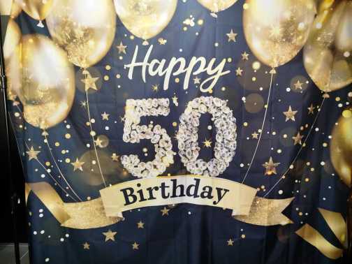 Dodali smo modro ozadje, napis Estera 40 in njeno sliko