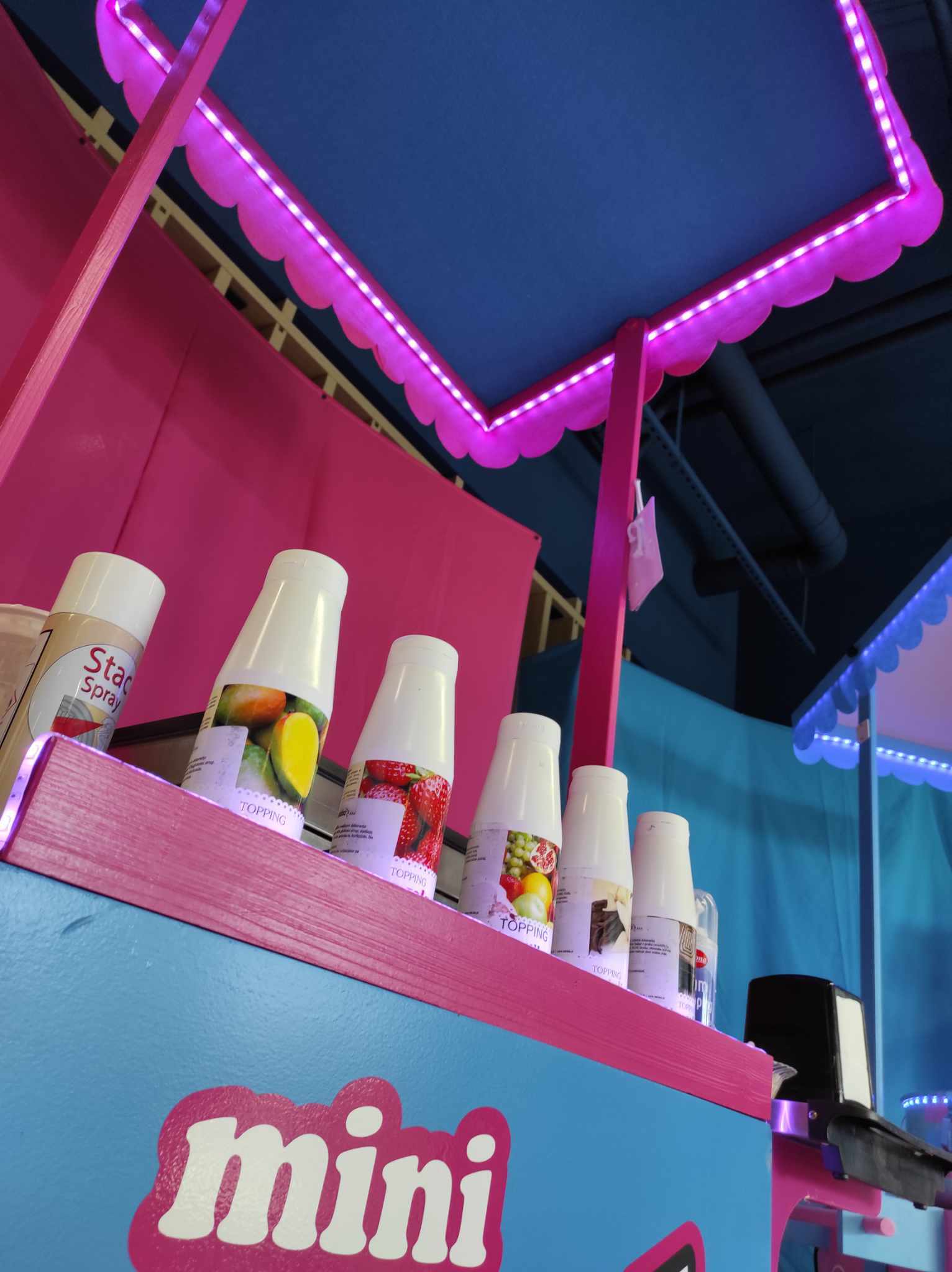 logotipom mini PUUF palačinke. Voziček ima tudi streho. Vse je opremljeno z led lučkami, tako, da v polmraku
