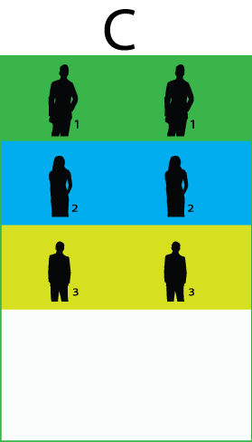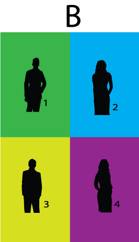 Na eno fotografijo lahko dodamo 4 različne poze. Če slikamo samo enkrat bo videti kot na sliki D. Če slikamo 4x potem