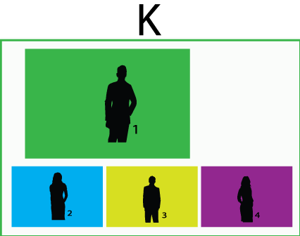 V tem primeru K, smo slikali 4 različne poze ( 1, 2, 3 in 4 ).