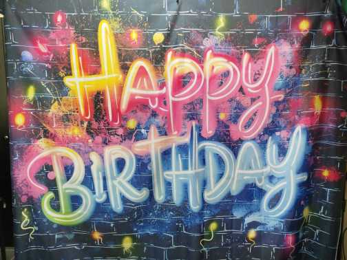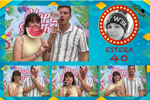 Dodali smo modro ozadje, napis Estera 40 in njeno sliko